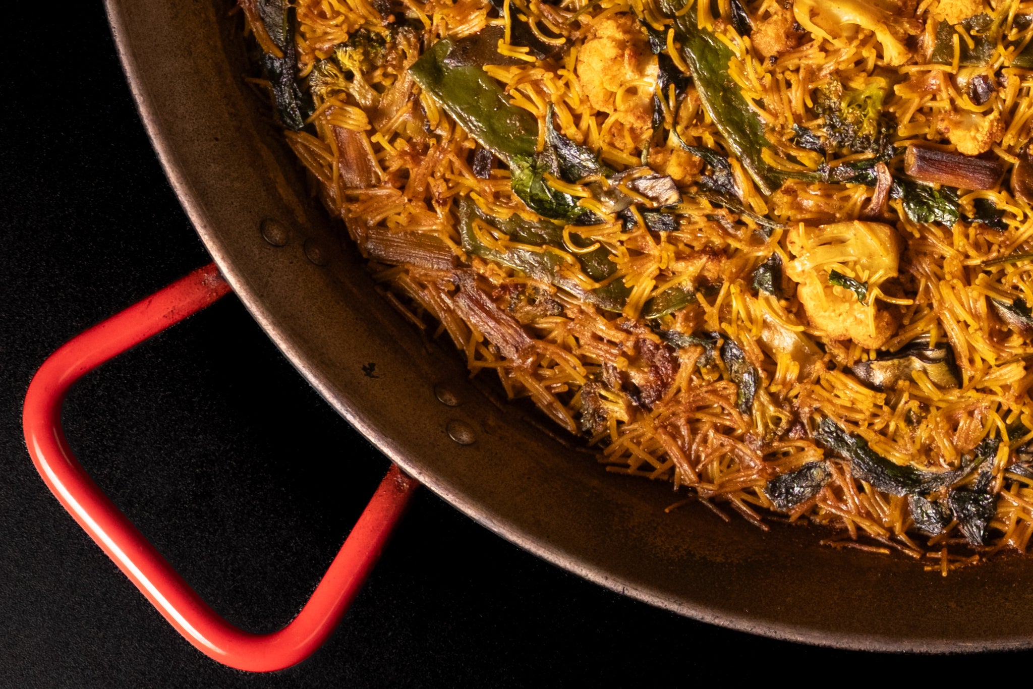 Disfruta de una auténtica fideuá de verduras, elaborada con los mejores ingredientes frescos y locales. Sin carne ni pescado, pero con todo el sabor, esta receta tradicional incluye coliflor, brócoli, setas, espinacas, judía fresca y ajos tiernos, cocinados sobre un sofrito casero que potencia cada bocado.