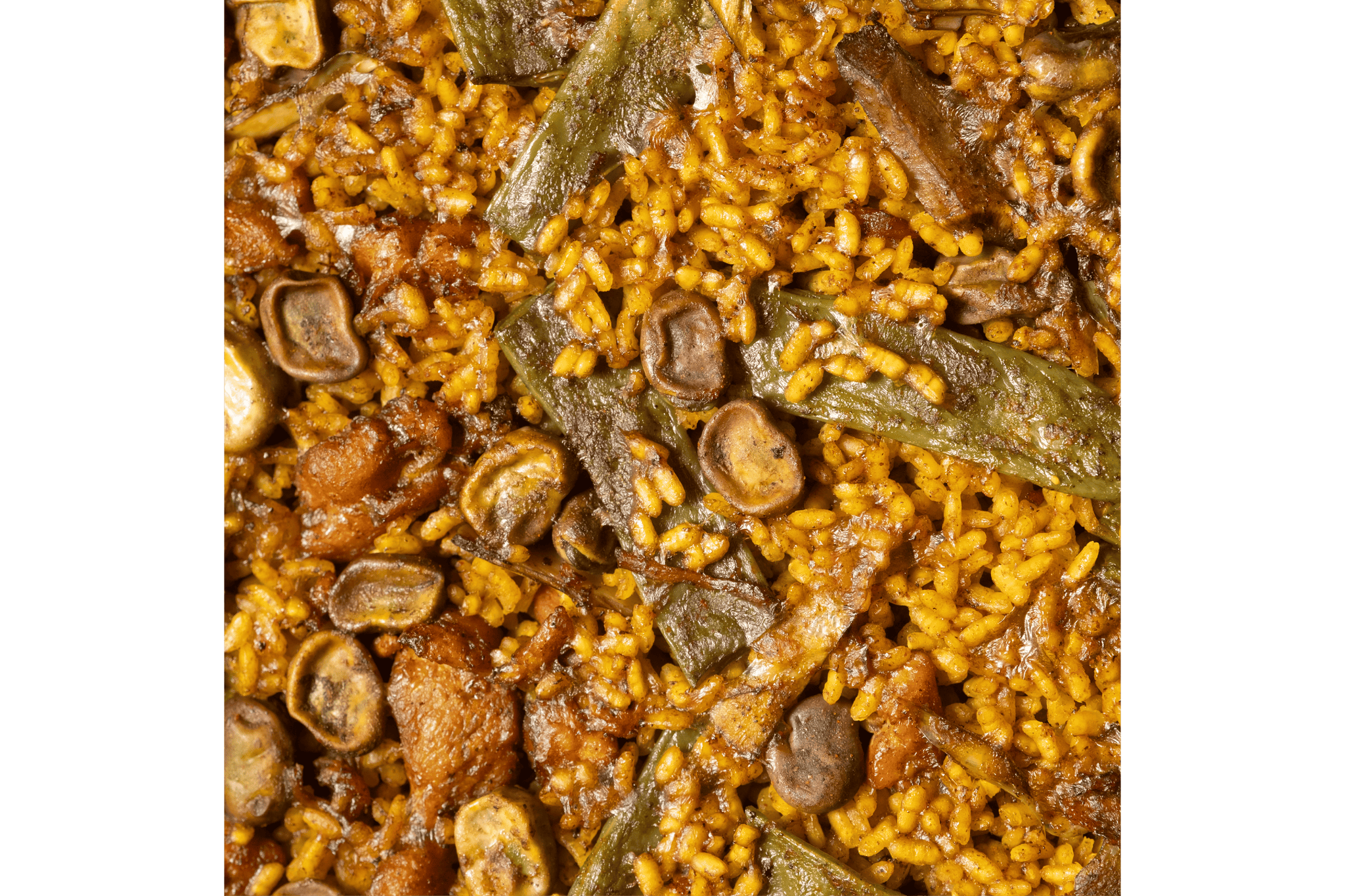 Disfruta la paella de invierno, una paella de temporada elaborada con contramuslo deshuesado, alcachofas, judía y habitas tiernas. Ingredientes frescos cocinados sobre un sofrito casero, para acompañar los días fríos de invierno.